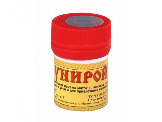 Si s’utilitza Uniroi per atraure eixams, s’hauria d’aplicar al voltant de la circumferència de l’escoll fins a una amplada de 8 mm. Prou 1 g de la droga. Quan s’utilitzen trampes, és adequada una aplicació interna de 10 g alhora.