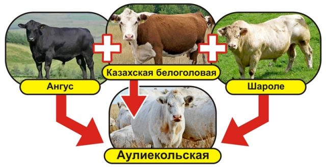 La raça de bestiar Auliekol és relativament jove. Va ser criat pels criadors el 1992 a la regió de Kostanay, a la República de Kazakhstan, com a resultat de l'encreuament de tres races de carn. Per a la cria, els productors de toros usats de les races Aberdeen Angus i Charolais i la vaca de cap blanc kazakh. Els principals criteris de selecció per als individus reproductors eren les seves característiques com la maduresa primerenca, el pes corporal gran i la facilitat de part.