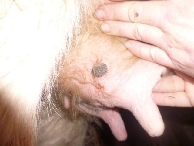 Com podeu veure a la foto, amb el desenvolupament de la verola a la ubre d’una vaca, les erupcions de la pell al llarg del temps es fonen en un únic tot, cobert d’una escorça fosca, que s’esquerda i sagna amb qualsevol moviment. Això provoca un dolor apassionant per a l’animal. Per tant, la vaca intenta prendre una posició còmoda o estendre les cames per reduir les molèsties.En aquest context, és possible que no permeti que la lletera s’aproximi a ella, ja que qualsevol contacte amb els mugrons adolorits o el mamell causa dolor agut.