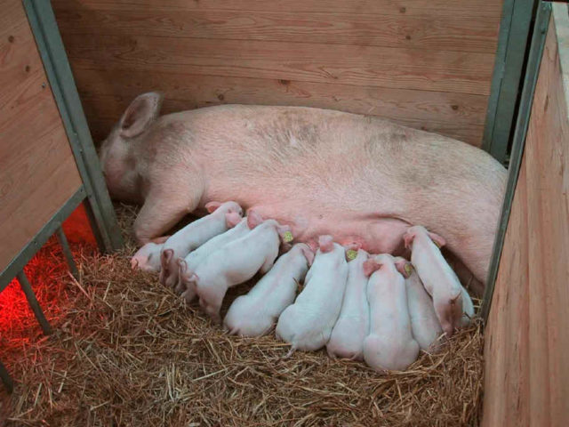 Les grans granges de porcs utilitzen el mètode cel·lular de cria de porcs. Cadascuna de les cèl·lules conté uns 3 individus, hi ha un petit angle d’inclinació, amb l’ajut dels quals excrements, les restes d’aliments líquids baixen cap a un canal especial. El microclima d’aquestes granges està regulat per sistemes automatitzats.