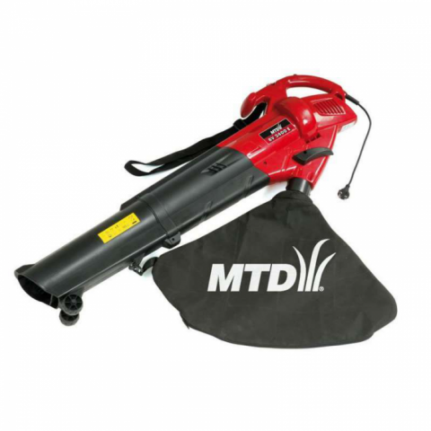 El bufador elèctric MTD BV 2500 E funciona en tres modes: bufat, aspiració i reciclatge. La canonada d’aspiració està equipada amb rodes que faciliten el moviment del dispositiu.