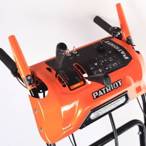 La unitat autopropulsada de gasolina es diferencia del model anterior per la presència d’un far halogen prou potent i un arrencador elèctric alimentat per la xarxa. També s’ofereix la possibilitat d’iniciar manualment. L'ajust mecànic de la canaleta de sortida es realitza amb un mànec lateral. L’amplada augmentada de les rodes, fins a 14 cm, permet que el bufador de neu Patriot Pro 658e es pugui moure amb seguretat per qualsevol carretera.