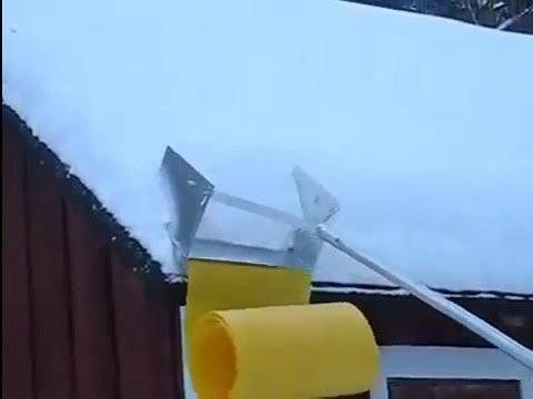 Podeu treballar amb aquest raspador, en general, sense esforç. N’hi ha prou amb una persona de peu a terra i empènyer l’eina cap al pendent del sostre amb moviments lleugers. El marc tallarà la capa de neu, que, amb el seu propi pes, lliscarà cap al terra al llarg de la franja de tela.