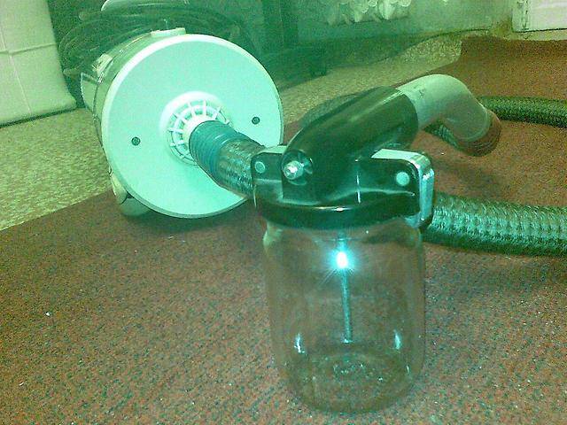 Per entendre ràpidament com fer un potent bufador amb les seves pròpies mans, només cal mirar l’antiga aspiradora soviètica. Disposa de dues sortides: un broquet d'aspiració i un escapament. Si teniu aquesta unitat, no heu de fer una aspiradora de jardí amb les vostres mans. Ja està llest. Posar una mànega a l’escapament proporciona un bufador d’aire o un polvoritzador de jardí. Aquí fins i tot podeu estalviar en un spray, ja que s’inclou al kit en forma de broquet en un pot de vidre.