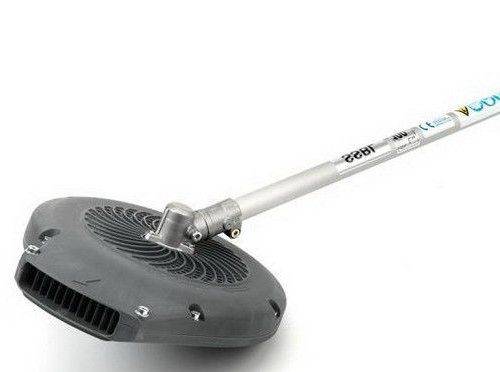 Hi ha bufadors sense motor. Són fitxers adjunts a altres equips. Agafeu un bufador de talladora, per exemple. Aquest broquet consta d’una carcassa amb ventilador a l’interior. Connecteu-lo a la barra de tall en lloc del cap de treball. Aquest bufador està destinat a expulsar petites restes dels camins del jardí.