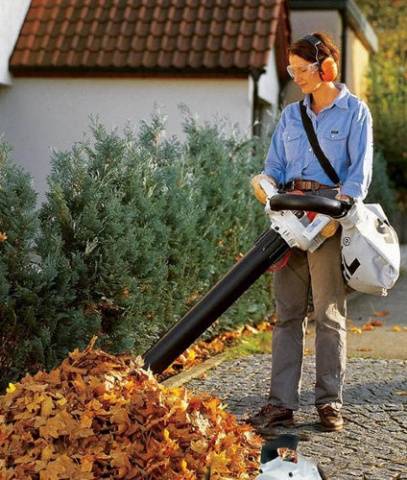 - netejant la zona de tota mena de deixalles, s’adapta bé no només a les fulles i a l’herba tallada, sinó fins i tot amb branques estirades a terra, per això podeu utilitzar tant la funció de “bufat” com la funció de “succió”;
