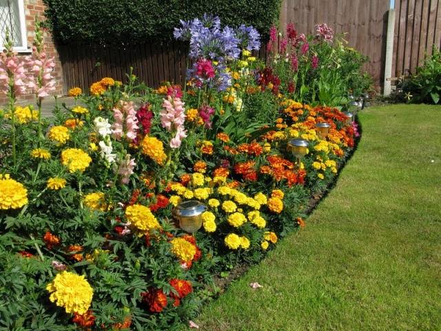 Tingueu en compte que les anuals són un complement temporal, però sorprenent, al jardí de flors; cada any es poden plantar noves plantes al seu lloc o es poden comprar les mateixes. Falgueres verdes, hostes, heucheras tenen un aspecte espectacular al jardí de flors.