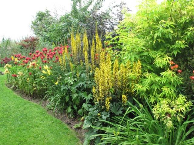 - una altra opció per col·locar plantes perennes altes són llocs prop de cases i tanques;