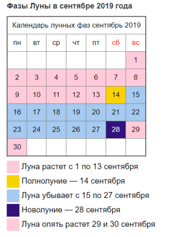 - 15-16-17 de setembre, lluna minvant, signe del zodíac - Àries. Els jardiners recol·lecten de tots els cultius, però segons el calendari, no es recomana posar-los a les llavors.
