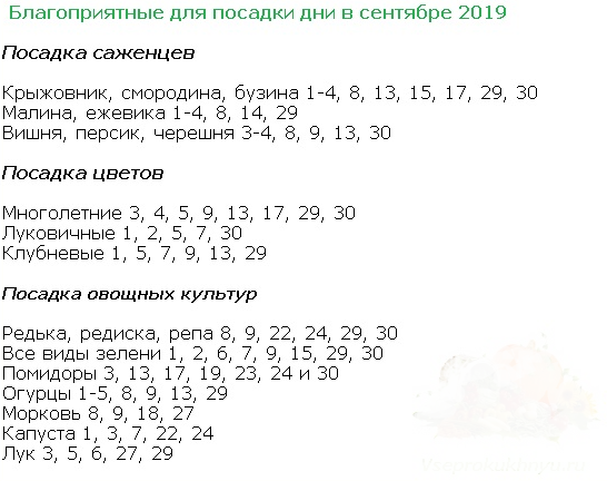 A la tardor, els jardiners sembren cultius d’hivern, així com els que creixen a l’hivernacle. El calendari indica dies propicis per a cada verdura i arrel. Tot i això, això no vol dir que no es puguin sembrar en altres moments. Només cal evitar només els dies prohibits.