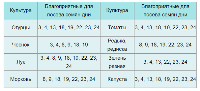 Els dies propicis tenen un efecte positiu en el rendiment de determinades feines. Durant aquest període es realitza la sembra, es planten plantules. Per facilitar la navegació dels jardiners i jardiners, s’han transferit a la taula tots els dies favorables per plantar al calendari.
