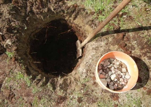 - El fons del pou està ben drenat i, a continuació, està mig cobert de sòl nutritiu barrejat amb fertilitzants minerals.