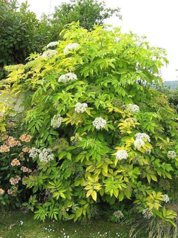Una de les varietats més demandades per al cultiu és el saüc negre Aurea, que es mostra a la foto. Característiques d’un arbust de fulla caduca: