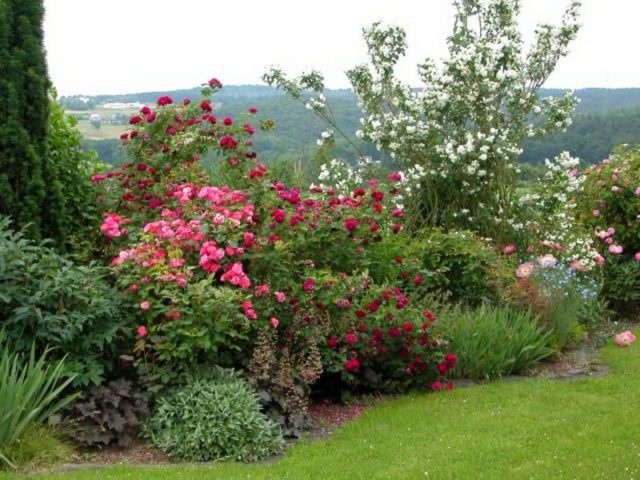 Els arbustos baixos (fins a 120 cm) de les varietats Pompon i Camamilla es veuran bé en primer pla a les plantacions de cultius multinivell; per a la formació del segon nivell d’aquestes composicions, són adequats Elbrus, Komsomolets, Moonlight amb una alçada de mata de fins a 160 cm.