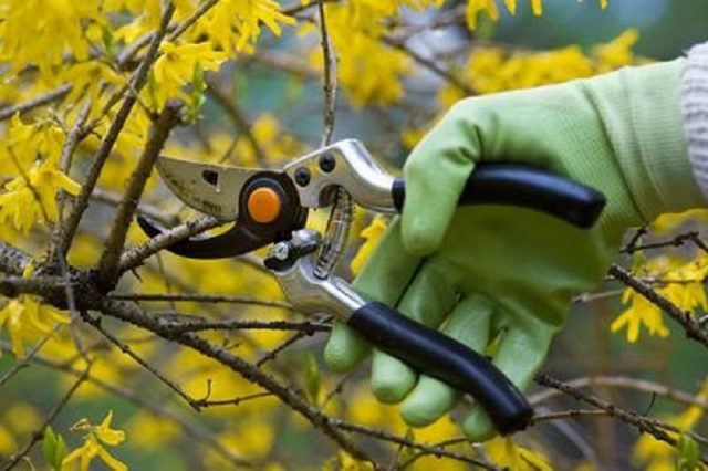 Tant els arbusts adults com els joves estan sotmesos a poda sanitària. En el procés de poda, s’eliminen les branques velles, danyades i en excés, que tendeixen a terra, és clar, si no teniu previst propagar la forsícia per capes.