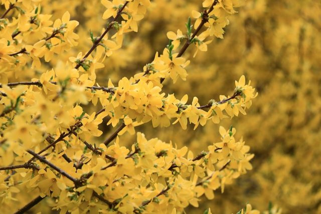 La plantació a terra oberta i la cura de forsythia es duen a terme segons totes les recomanacions, només d’aquesta manera, després d’un llarg hivern, es pot gaudir de les flors brillants de l’arbust. Forsythia comença a florir a l’abril. A causa de les seves característiques decoratives, els dissenyadors es van enamorar de l’arbust, utilitzant aquesta planta per decorar paisatges.