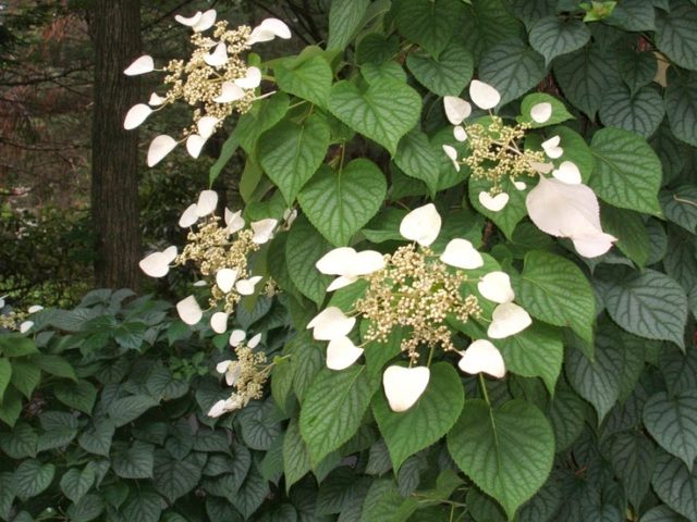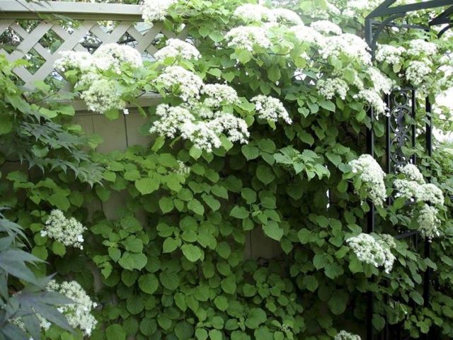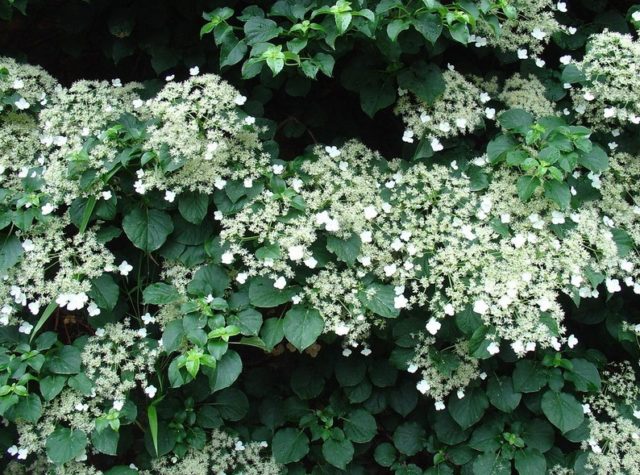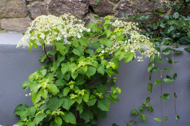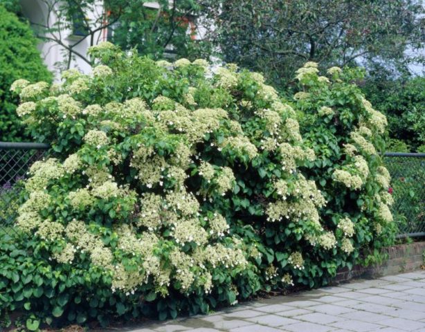L’hortènsia peciolada d’aquesta varietat pot créixer fins als 25 m d’alçada i és perfecte per decorar parcel·les de jardí. Petiolaris s’utilitza per decorar edificis, tanques i arbres alts. Les fulles de la planta són de color verd fosc, les flors són verdoses o blanques.