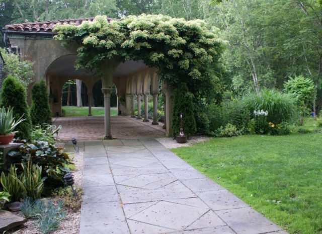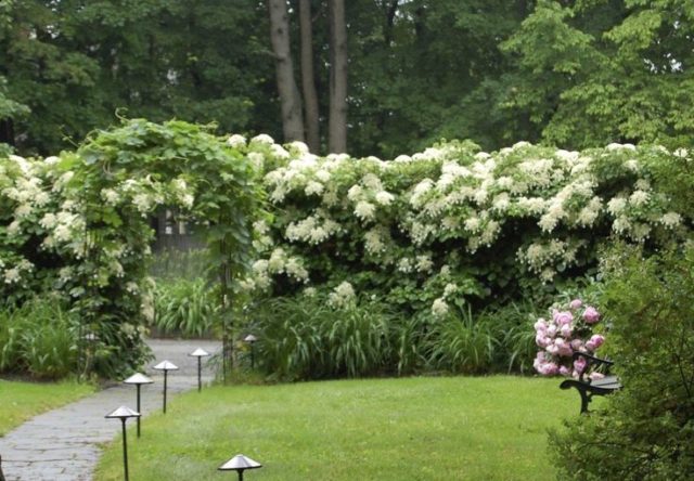 Quan es crea un disseny de jardí, l’hortènsia de pecíol s’utilitza de manera molt àmplia i variada. Les fotos de liana hortensia mostren que podeu utilitzar-la:
