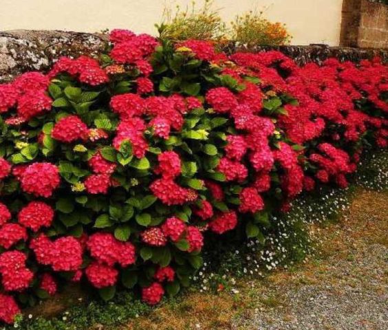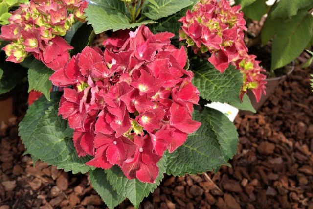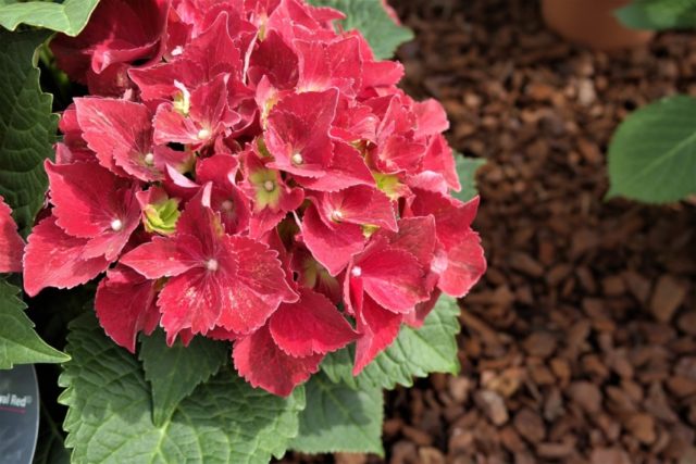 El diàmetre de les inflorescències vermelles reials és d’uns 15 cm i consisteix en flors estèrils de quatre pètals de color vermell brillant. El color de l’hortènsia depèn de les característiques del sòl: en els neutres, el color és més clar, fins i tot cremós, i en els àcids adquireix un to blavós.