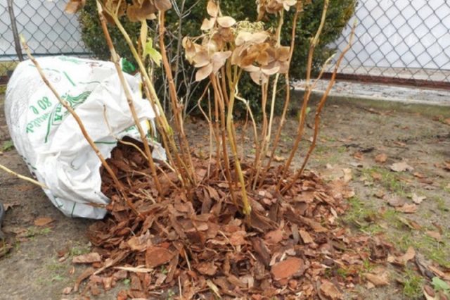 També cal utilitzar un mulching orgànic, que protegeix el sòl del sobreescalfament i del creixement de les males herbes. Es realitza a finals de primavera, omplint l’espai al voltant de l’arbust de l’hortènsia amb una capa uniforme de serradures o torba.