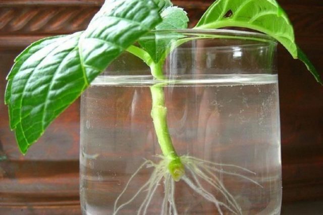El procediment s’inicia a la segona meitat de l’estiu. Per a això, es seleccionen esqueixos de 10-15 cm de llarg amb diversos parells de fulles. És important que els brots no s’assequin, per tant, és òptim podar a primera hora del matí quan la planta estigui saturada d’humitat.Els brots es col·loquen en aigua i s’elimina el parell inferior de fulles i s’escurça la superior. Després, es col·loquen durant un parell d’hores en una solució amb un estimulador del creixement (arrel, zircó, etc.).