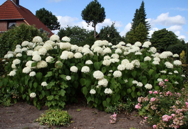 Les primeres inflorescències hemisfèriques apareixen a la part superior dels brots joves a mitjans de juliol. Al principi, les flors són verdoses, després blanques, després de nou verdoses. La durada de la floració d’un hortènsia d’arbre és d’un mes i mig. Algunes varietats floreixen de juny a octubre.