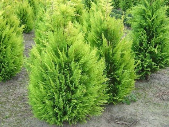 En les composicions de paisatges, el xiprer de Lawson, Yvonne, s'utilitza més sovint per decorar carrerons.