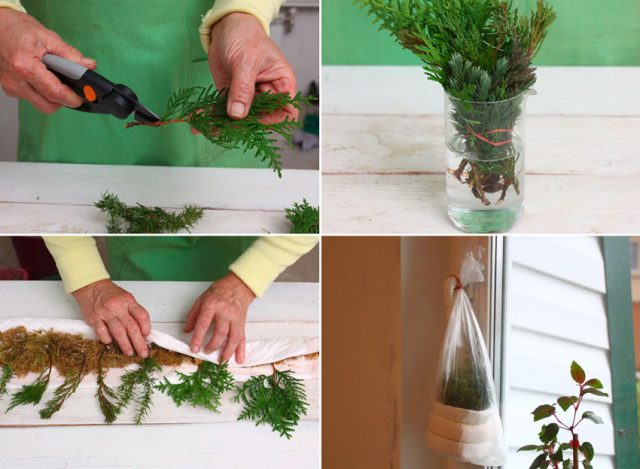 - Capes. Les espècies de xiprers es propaguen amb una disposició de tiges baixa i rastrera. Trieu la tija més baixa. S'hi fa una incisió i es fixa a terra amb un tall abocat, esquitxat de terra. Després que els esqueixos hagin arrelat al sòl, es tallen de l’arbust mare.