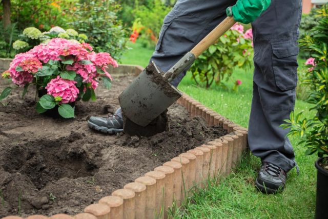 Les plàntules de les varietats de hortènsies de fulla gran vermella se solen vendre en contenidors. El millor és replantar-los a terra oberta a principis de primavera, abans que la planta comenci a créixer i a la tardor. Després d’haver decidit el lloc d’aterratge, cal excavar amb antelació un forat d’aterratge. Aproximadament, les seves dimensions haurien de ser de 0,5 m de diàmetre i 0,4 m de profunditat, però és més convenient determinar aquest indicador en funció de la mida del recipient on es troba el sistema arrel de l’hortènsia.