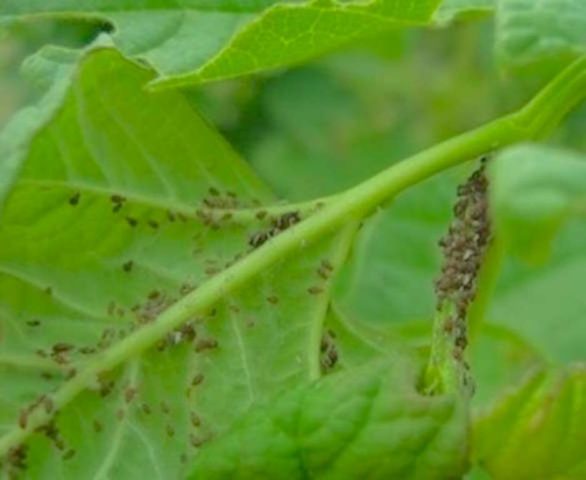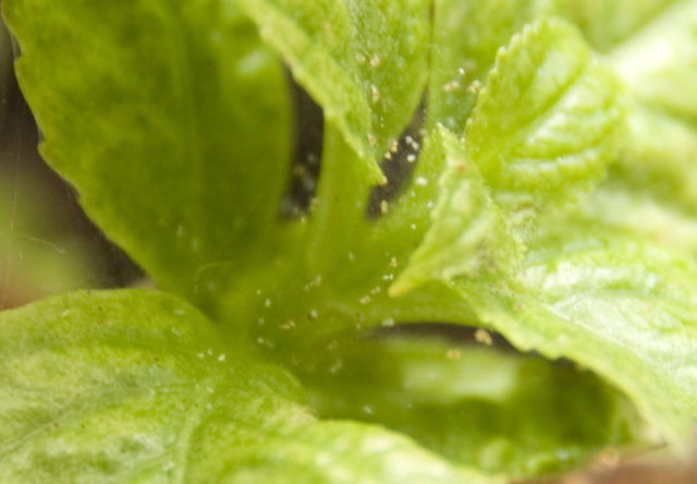 Els pugons solen amagar-se a la part posterior de les fulles.