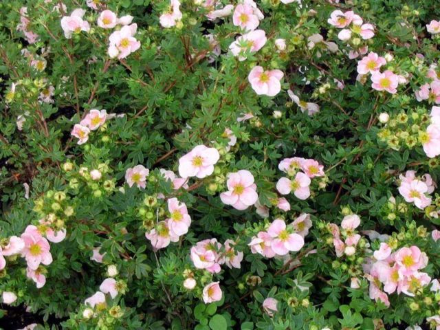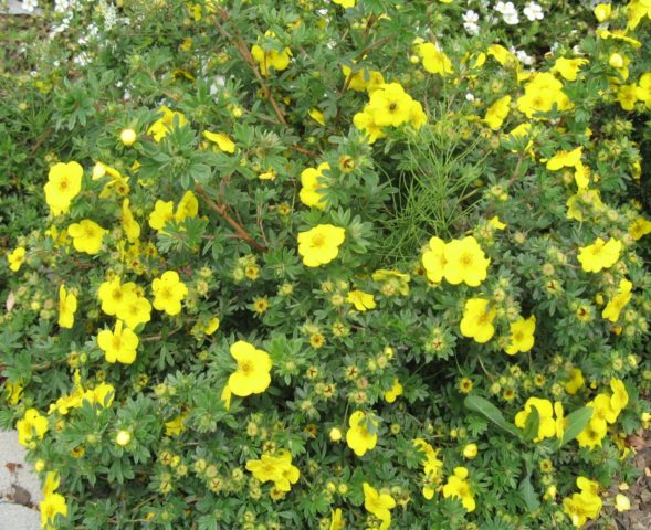 Per a una bardissa, es pot plantar cincfoil complint certes regles de disseny de paisatges. Aproximadament 5 cm s’allunyen del camí de manera que els arbustos puguin créixer i no interferir en el moviment.