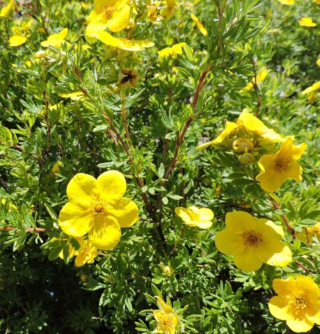 Descripció externa de l'arbust de Potentilla Goldstar: