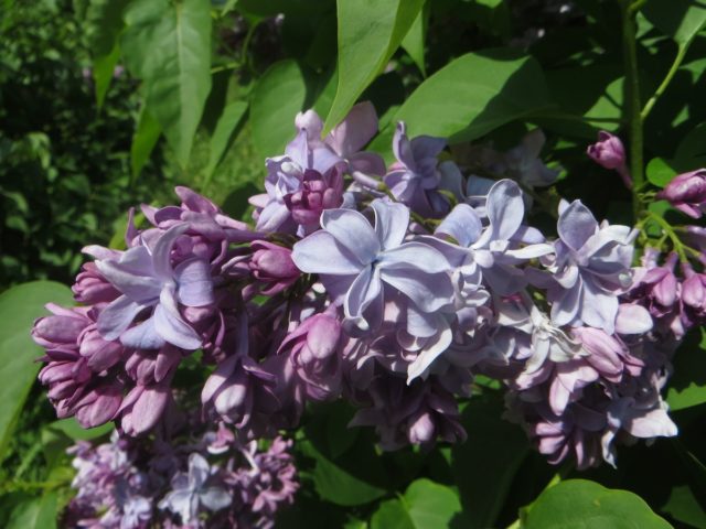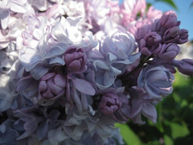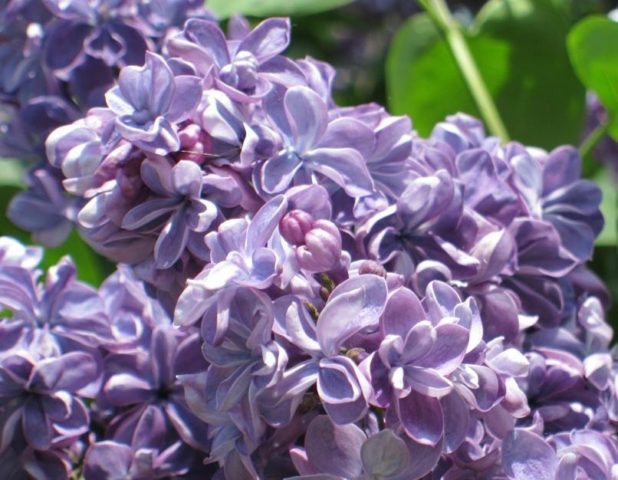 Els cabdells són grans, tenen un color morat fosc amb una tonalitat castanya. Quan s’obren, formen 3 corol·les. La primera corol·la és de color blau-porpra. La corol·la situada a l’interior és més clara i té un to platejat. Les flors dobles semblen roses. Forma grans inflorescències, formades per un parell de panícules. Té una olor. La planta forma arbusts extensos. Arbust de floració tardana amb un llarg període de floració. Creixen arbusts de mitja alçada.