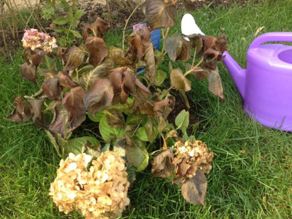 Les hortènsies afectades per les paparres s’assequen i cauen, després del qual el cultiu no creix