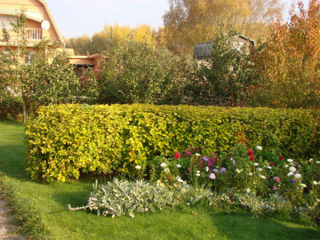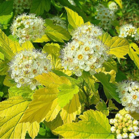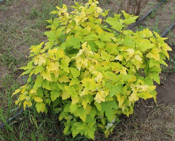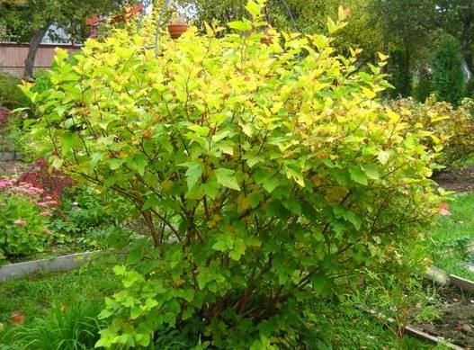 Espectacular arbust Luteus de fulla de viburn amb una alçada de 2,5 a 3 metres, té una corona esfèrica i estesa amb branques una mica caigudes i grans fulles ondulades, cosa que dóna a la planta un esplendor deliciós des de dalt fins al fons. La varietat Luteus, a diferència d’altres representants d’aquesta espècie, té fulles de 3 o 5 lòbuls. A més, la varietat es distingeix per l’aspecte inconsistent del fullatge. Dissolt a la primavera, adquireix un ric color groc amb un to lleugerament ataronjat, a l’estiu es torna verd i a la tardor presenta un color daurat únic.