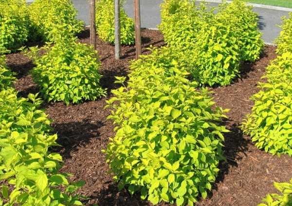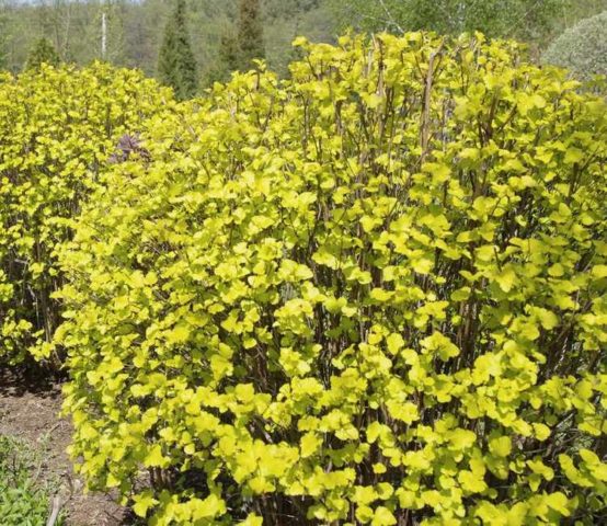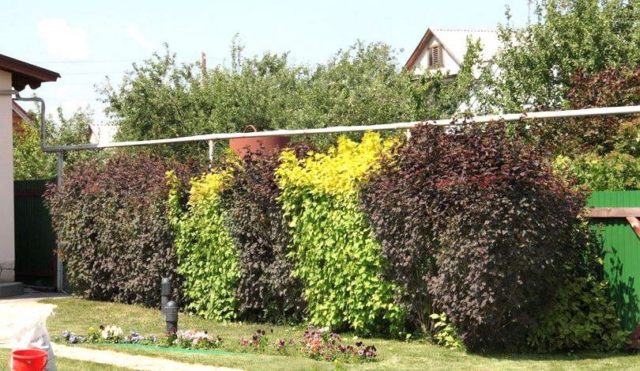 Per tancar un parc infantil o separar el jardí de l’àrea local, són perfectes varietats de vesícules de color groc baix, com Amber Jubilee o Darts Gold.