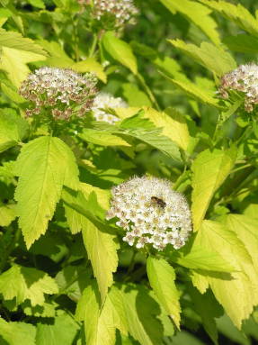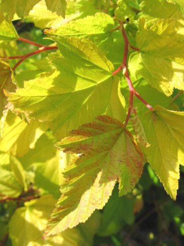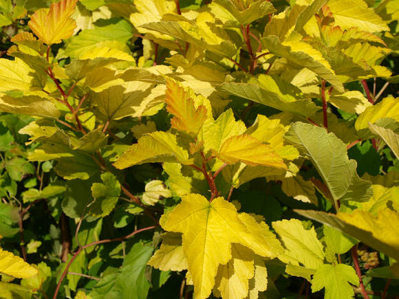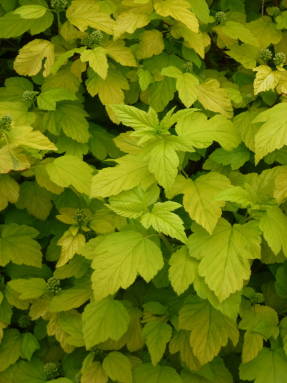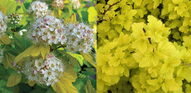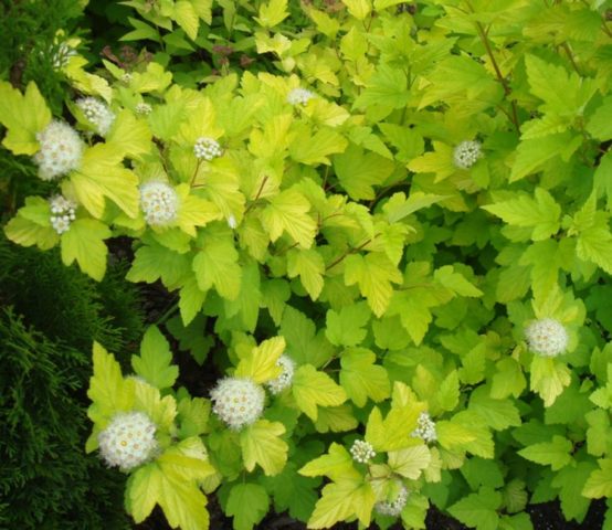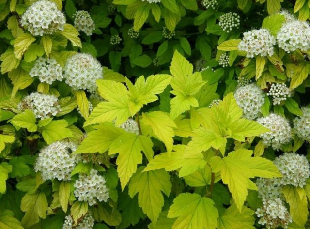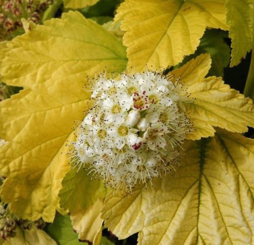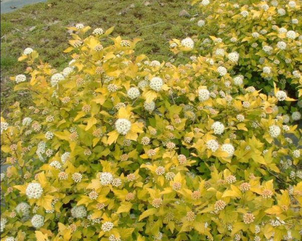 La planta de bombolles grogues Luteus (Aureus) (a la foto) és una plàntula de creixement ràpid, que arriba als 3-3,5 m d’alçada i fins als 4 m d’amplada. En florir, les fulles tenen un fullatge groc ataronjat, que es torna verd a l’estiu i a la tardor adquireixen un color bronze. La varietat no és exigent pel sol i el sol, resistent a malalties i plagues, resistent a les gelades. S’utilitza per crear composicions, en plantacions individuals i en bardisses.