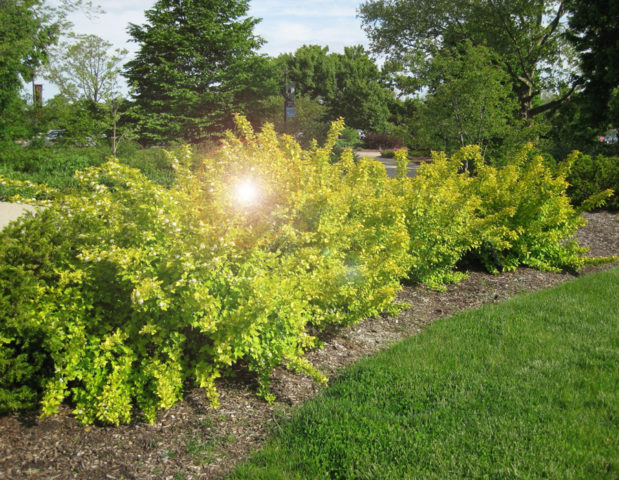 La varietat es distingeix per un color de fulles que canvia intensament durant tota la temporada. Creix fins a 2 m d'alçada i fins a 2 m de diàmetre.A la primavera, les fulles són de color groc daurat, es tornen verdes a l’estiu i es tornen grogues a la tardor. Les flors de l’arbust són de color blanc rosat amb un aroma lleuger i agradable. Creix bé tant al sol com a les zones ombrejades (només el color de les fulles canvia a verd).