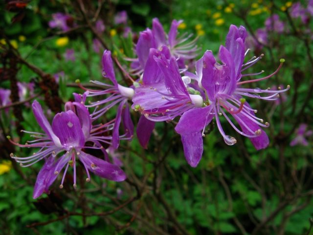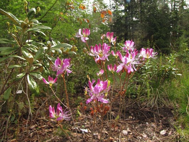 Rhododendron arbust canadenc, resistent a les gelades i sense pretensions, amb les seves característiques, és adequat per créixer al carril mitjà i a climes més severos. La terra natal de la planta ornamental són zones humides i pantanoses de boscos de coníferes i mixtes al nord-est del continent americà. Les flors de les espècies canadenques es comparen sovint amb les arnes que revolotegen.
