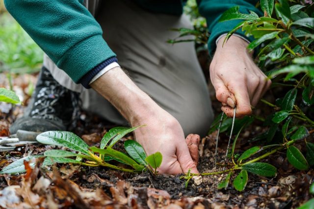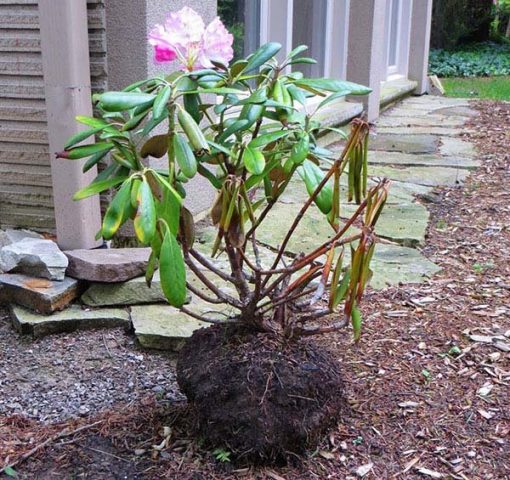 - Es fa un forat de mida 2 vegades més gran que el sistema radicular del rododendron de Schlippenbach.