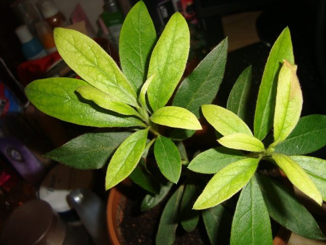 - taca de fulla - la malaltia s’expressa en l’aparició de taques marrons a les fulles del rododendre;