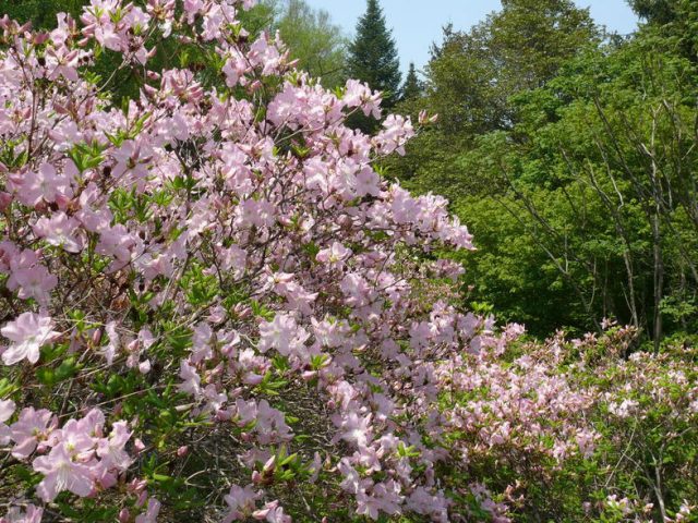 L’arbust ornamental canadenc rododendre pertany a varietats compactes, poques vegades creix més d’1 m d’alçada. Les fulles de la varietat són petites, verdes amb un lleuger to blavós, les flors són petites, només tenen uns 2,5 cm de diàmetre, poden tenir blanc , lila, rosa o magenta. En aquest cas, les flors solen recollir-se en inflorescències, de manera que semblen molt més grans.