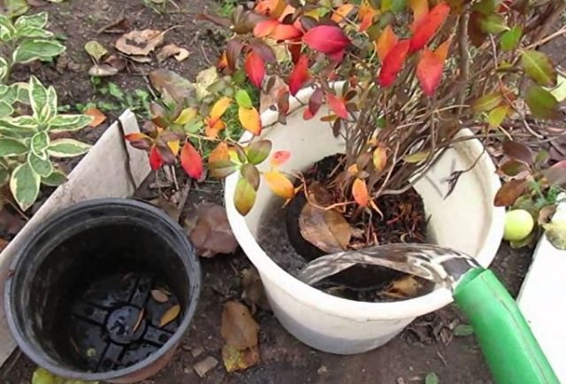 - Els arbustos s’alimenten amb preparats amb fòsfor i potassi, sense nitrogen, per tal d’aturar el creixement de nous brots.