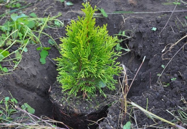 Una plàntula de thuja de dos anys es trasplanta a un lloc permanent, escollint un lloc adequat per al jardí, sense aigua estancada. Si l'aigua subterrània és alta, es planta sobre un terraplè. El lloc per plantar tuia no ha de ser també àrid, perquè el seu sistema radicular és superficial i, amb la falta d’humitat, s’asseca ràpidament, haurà de fer regs freqüents.