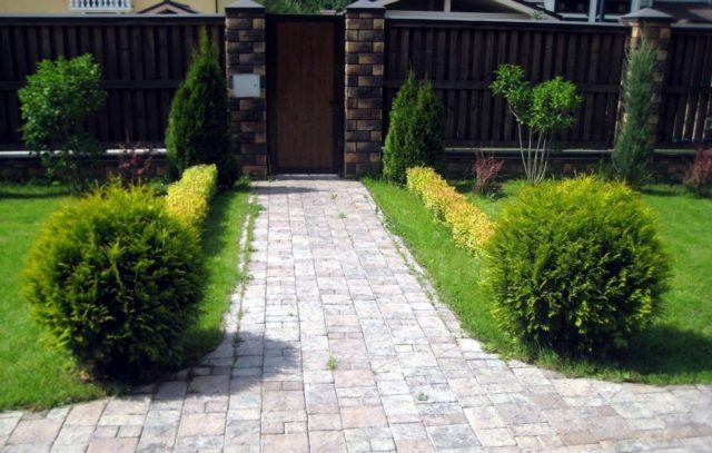 La tuja occidental de la varietat Reingold és una de les formes decoratives més populars utilitzades en el disseny de jardins i parcel·les personals. Gràcies al color de la corona, la planta es combina harmoniosament en qualsevol combinació amb plantes amb flors de mida reduïda, arbustos i grans coníferes. Un lleuger augment anual és una de les prioritats a l’hora d’escollir un tuja. L’arbust manté la seva forma donada durant molt de temps, no requereix un tall constant. A continuació es presenten fotos de l’ús de la tuia occidental Reingold en jardineria ornamental.