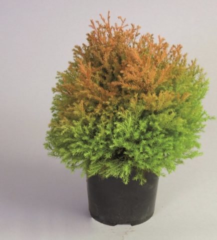 Si el cultiu de tuya occidental Reingold implica l’ús de material preparat de forma independent, examineu el sistema radicular, elimineu els fragments danyats, col·loqueu-ho en una solució de manganès durant 6 hores i, al mateix temps, en una preparació estimulant el creixement, Kornevin farà. Les plàntules obtingudes per mitjans generatius s’eliminen del recipient juntament amb la bola d’arrel, es desinfecten i s’utilitza un estimulador del creixement. Les plàntules adquirides al viver no requereixen tractament antimicòtic. És millor prendre material de plantació amb una arrel tancada a l'edat de tres anys. La foto mostra un plantó Reuolda de tuya de la mida òptima per plantar.