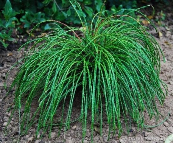 Aquesta varietat de tuja plegada té brots llargs penjants que s’assemblen a les cordes, motiu pel qual va rebre el seu nom - "whipcord", que significa "cordill" en anglès. Els brots estan coberts d’agulles brillants en forma d’escates, ben juntes entre si. A l’estiu, les agulles són de color verd i, quan fa fred, es converteix en un color bronze insòlit. L’arbust té un sistema radicular poc profund que és sensible a la compactació del sòl. A la descripció de thuja Vipkord, es nota la seva modèstia.