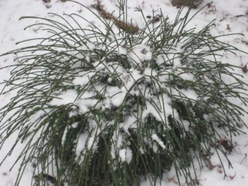 El material de cobertura s’elimina en el moment en què el sol de la primavera comença a escalfar-se. Si la temperatura nocturna pot danyar les agulles, les plantes es cobreixen cada vespre.