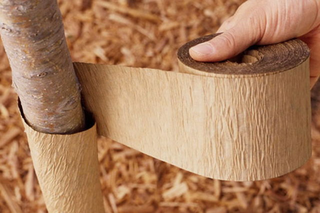 Per protegir l’arbre dels rosegadors, el tronc s’embolica amb un gruixut cartró