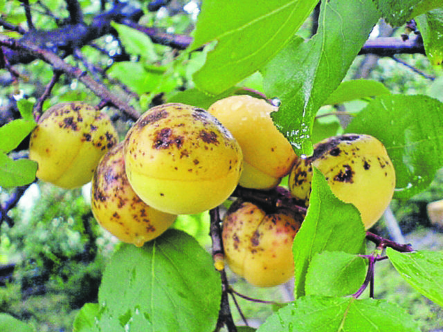 - Crosta... El símptoma inicial de la malaltia és l’aparició de taques marrons a les parts vegetatives de l’arbre. Al cap d’un cert temps, la crosta apareix als mateixos albercocs. En el procés de tractament de la malaltia, l’arbre es ruixa amb fungicides.
